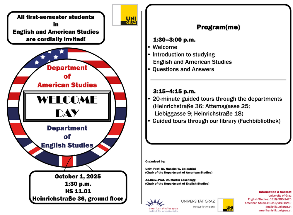 University of Graz Faculty of Humanities Department of American Studies News Welcome Day: Department of American Studies and Department of English Studies